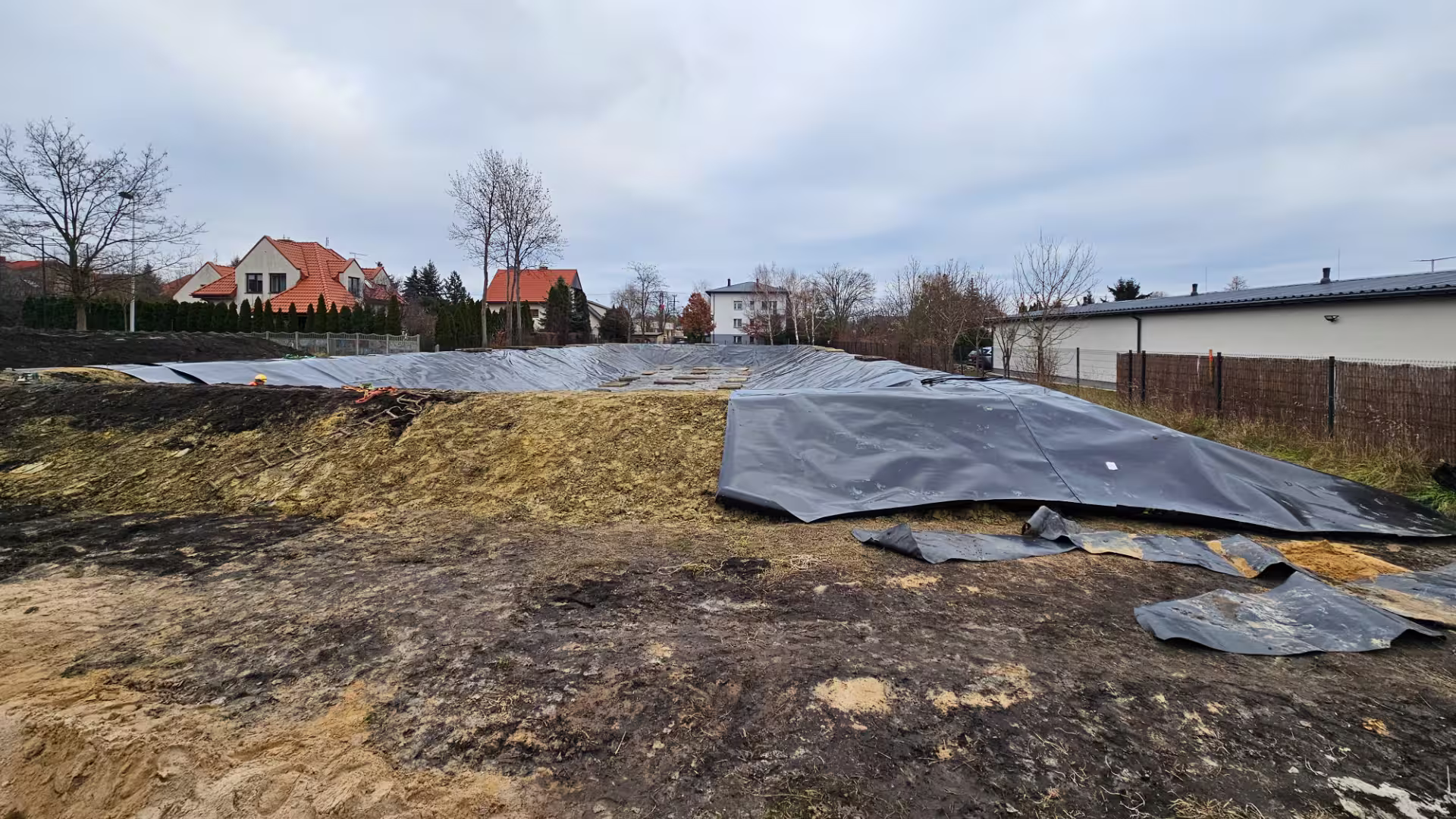 W trzech lokalizacjach (Police, Końskie, Błonie) wybudowaliśmy również specjalistyczne, szczelne zbiorniki ziemne. Zostały one wyłożone folią zgrzewaną, która skutecznie zabezpiecza grunt przed migracją i zanieczyszczeniem wód. Zbiorniki te, o łącznej pojemności ponad 8000 m³, służą do bezpiecznego gromadzenia wód pochodzących z próbnych pompowań.