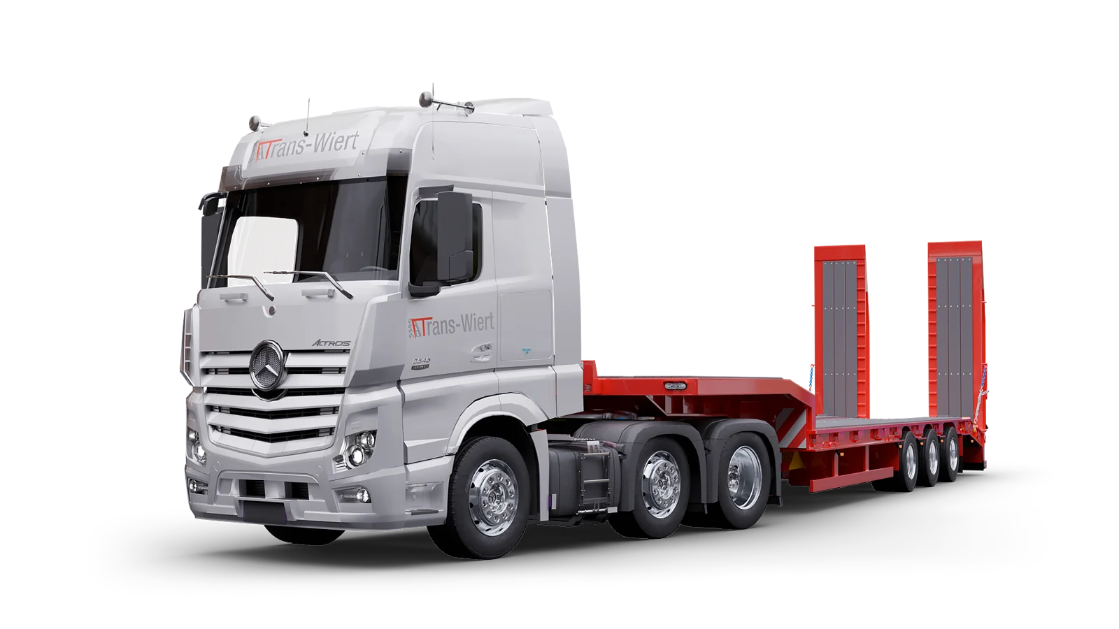 Zestaw idealny do transportu maszyn budowlanych, pojazdów lub elementów konstrukcyjnych. Laweta o długości 10 m i trzech osiach gwarantuje stabilność oraz bezpieczny załadunek i przewóz ciężkiego sprzętu. Dzięki solidnej konstrukcji i nowoczesnemu ciągnikowi zestaw doskonale sprawdza się w logistyce budowlanej i przemysłowej.